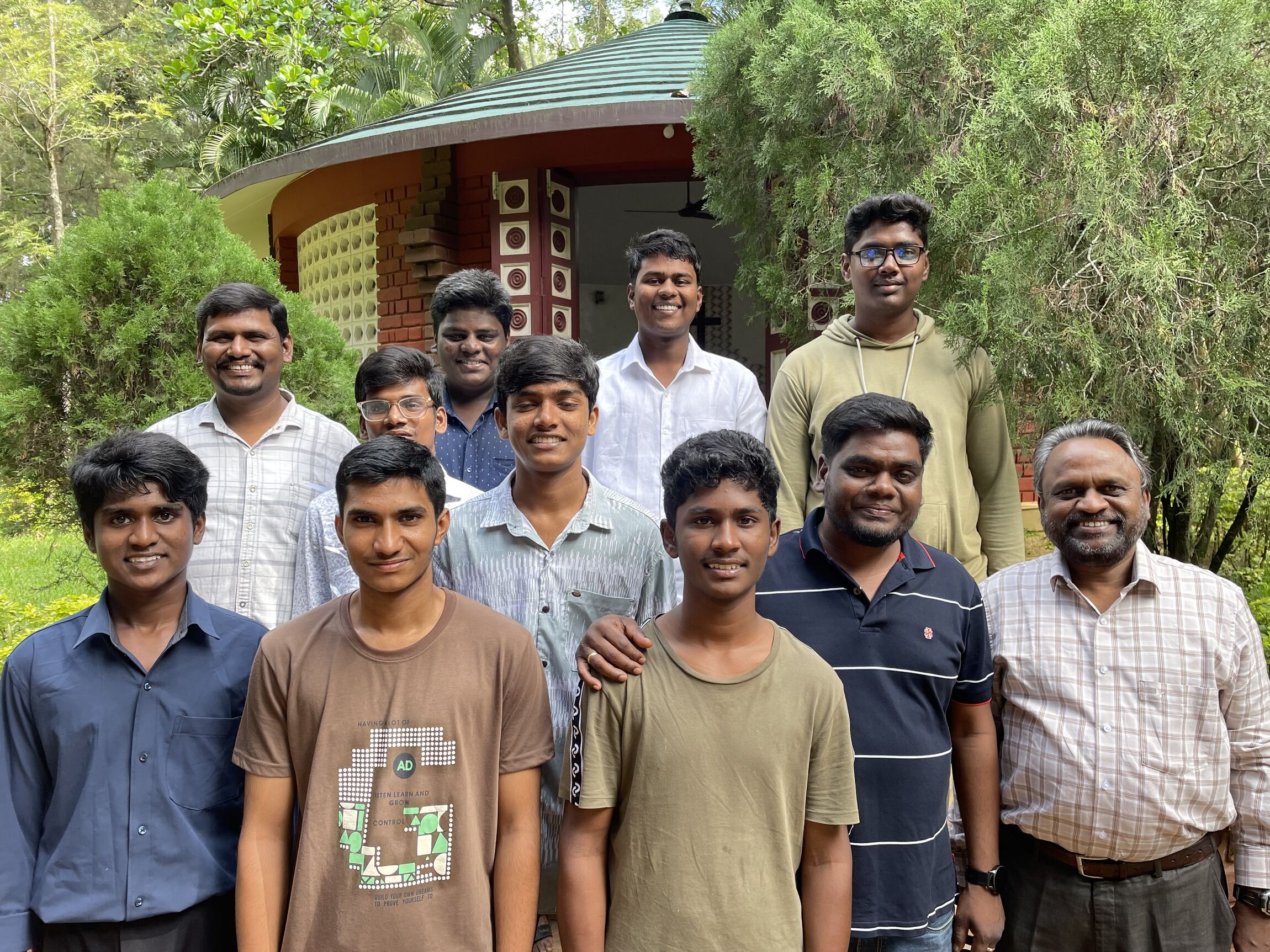 Das Foto zeigt die neue Gruppe. Links oben Dinnekar, der Leiter des Yelagiri-Zentrums, rechts unten Monan, der Betreuer und Lawrence, Direktor der Shalom-Foundation.