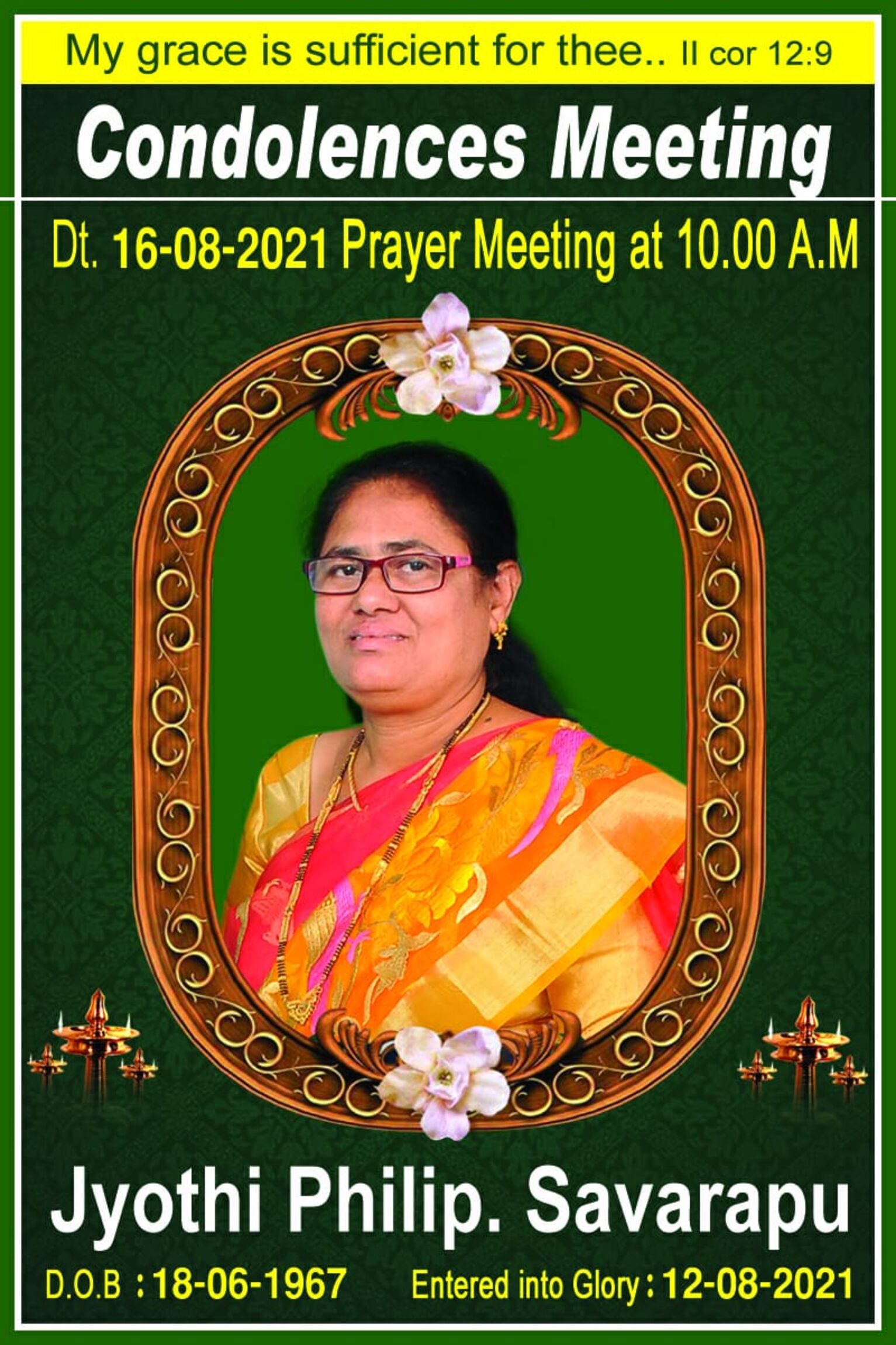 Die von Gott gesegnete Frau hat viele Jahre gegen ihre Krebskrankheit gekämpft. Die Familie dankt allen, die sie während dieser Zeit im Gebet und auch mit finanzieller Hilfe für die teure Behandlung begleitet haben. Der FMD und vor allem ein befreundetes Ehepaar im Freundeskreis gehörten maßgeblich dazu. Am Ende konnte die Lebenszeit Jyothies leider nur ein bisschen verlängert werden. Wo viele Menschen auf ein Wunder gehofft haben, blieb nur das Wunder des Glaubens an eine alles erfüllende Ewigkeit. Die letzten Monate waren sehr schwer für die Familie. Jetzt trauern sie zusammen mit den Geschwistern Jyothies und der ganzen Emmanuel-Gemeinde. Sie stützen sich gegenseitig und haben ihre geliebte Ehefrau, Mutter, Schwester und Gemeindeleiterin in Gottes gnädige Hand gegeben.