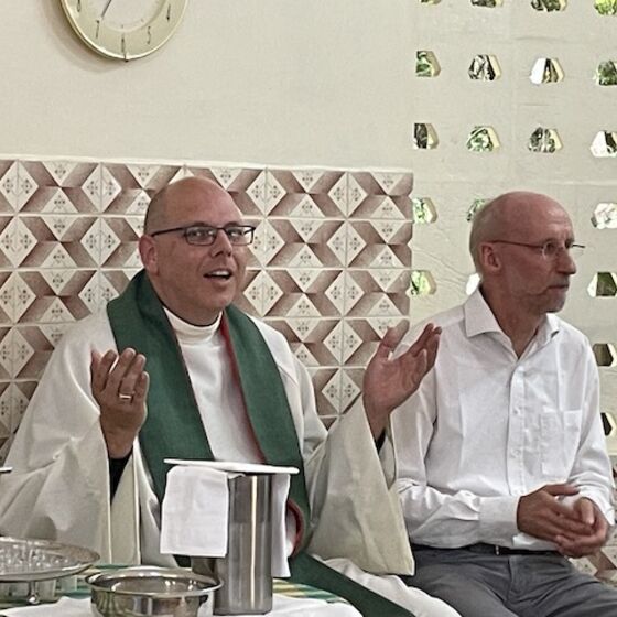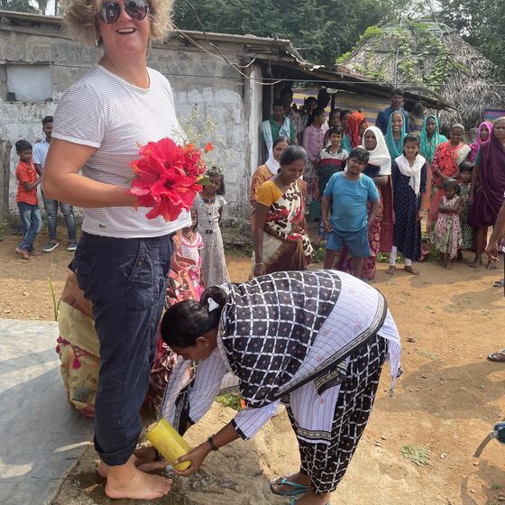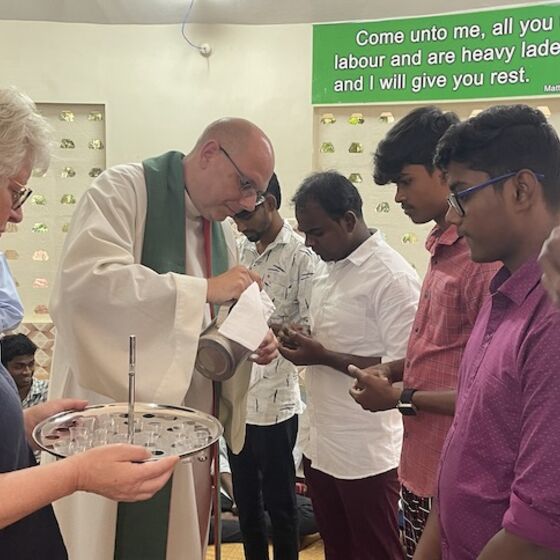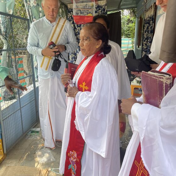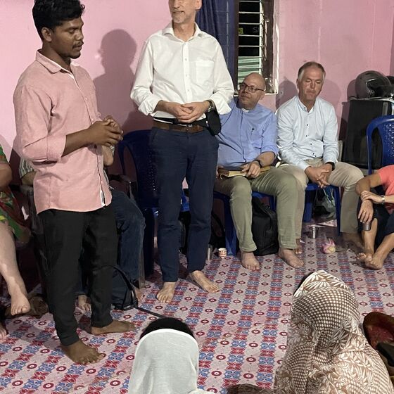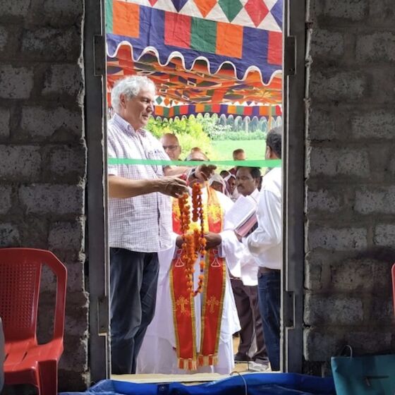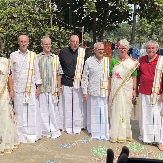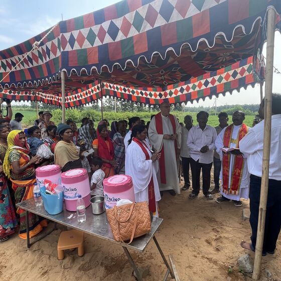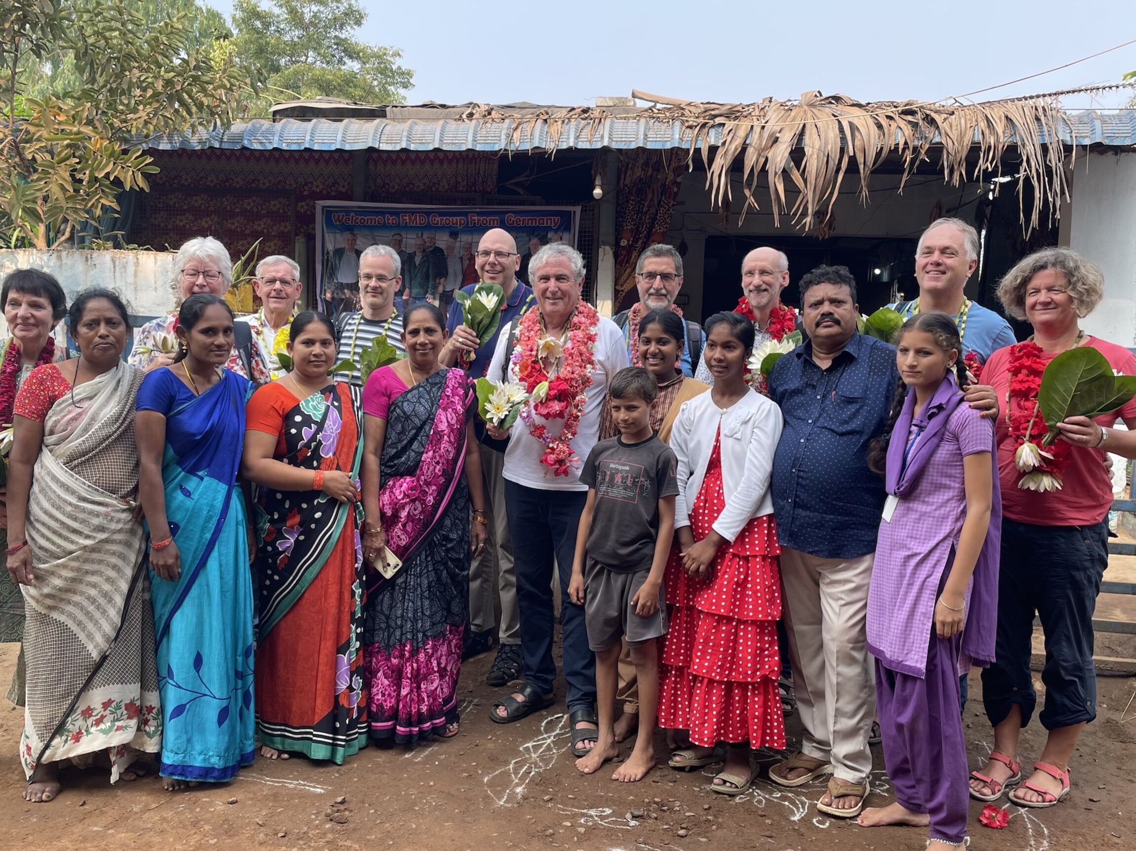 In der GSELC überall mit Banner, Blumen und Fußwaschung willkommen geheißen, fühlten wir uns sofort unter Schwestern und Brüdern. Wie schön es war, jene wiederzusehen, die im Juni in Deutschland waren! Am Sonntag verteilten wir unsere 11-köpfige Gruppe auf 3 Gottesdienste in verschiedenen Dörfern und wirkten darin mit. Wir erlebten diverse Andachten, die 3 Hostel mit fröhlichen Kindern, tuckerten zweimal in Fischerbooten über die Godavari und besuchten das bereits teilweise umgesiedelte Dorf Koida. Ein Höhepunkt war der Reformationstag, den wir zusammen mit etwa 350 Gemeindegliedern unter typisch indischem Baldachin feiern durften. Dazu wurden auch wir indisch herausgeputzt, zur Freude unserer Partner. In einer neuen Kolonie konnten wir die leider noch nicht ganz fertige Kirche einweihen. Es ist wichtig, dass die GSELC schnell mit Personal und auch Gottesdiensträumen in die neuen Kolonien kommt, um dort ihre Gemeindeglieder zu sammeln und auch andere einzuladen. So ging es in Gesprächen, bei Pastoren- und Leitungstreffen immer wieder um Projekte und Vorhaben, wo die Geschwister zusätzlich zu unserem Gebet auch finanzielle Hilfe brauchen.